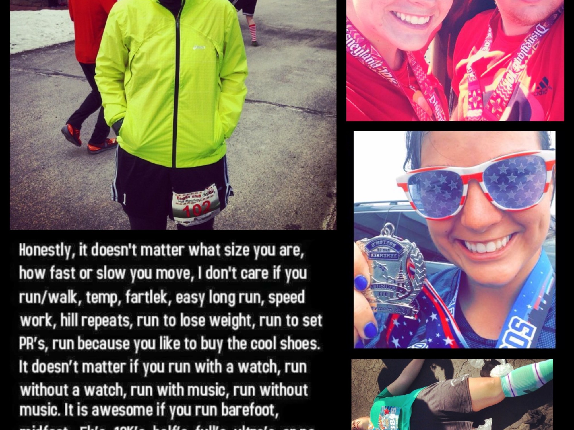 I run because no matter how fast or how far I go, no matter how many races I run– I am a runner and every time I lace up my sneakers, I have won. I run because every single time I step into a corral I am participating in something that is far greater than me. I escape the confusion, chaos, and negativity of the world I run because in those moments I am in my own world, a world where I am invincible.