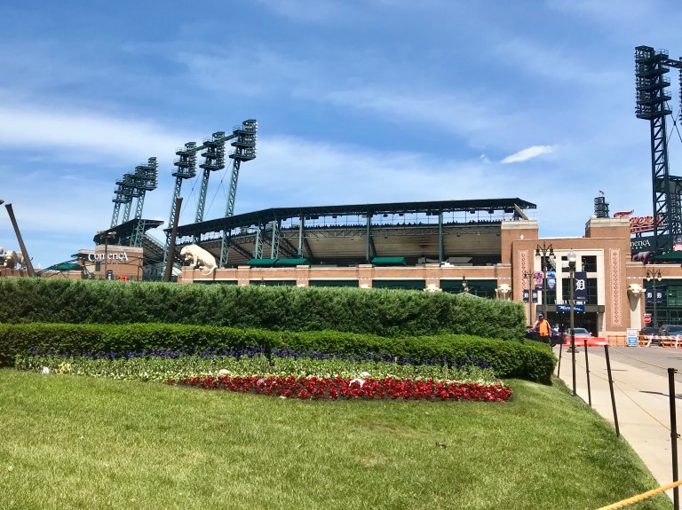 The stadium was probably 10% filled though and a third of those fans had made their way to whatever shade they could find by the 3rd inning. It was well worth the trip though and I would recommend a night game to anyone who happens to be in the Detroit.}