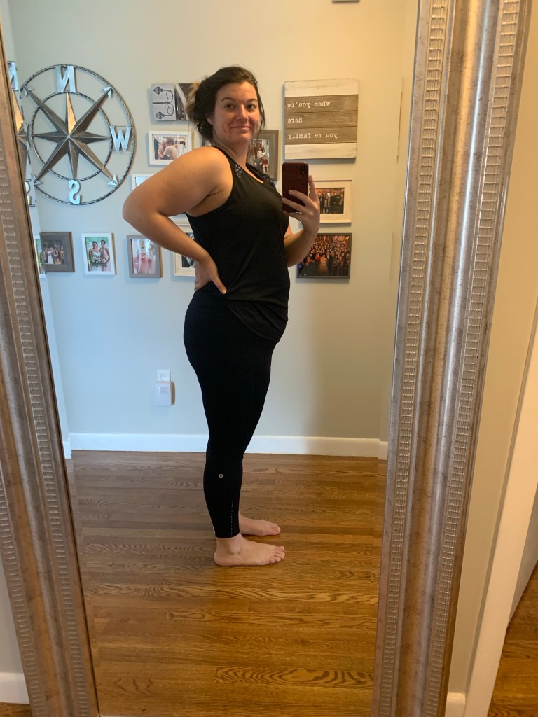 If I was going to commit to working out the whole pregnancy I was going to be comfortable doing so. I invested in three pairs of maternity workout pants that I continue to wear to this day I just rotate between the three.